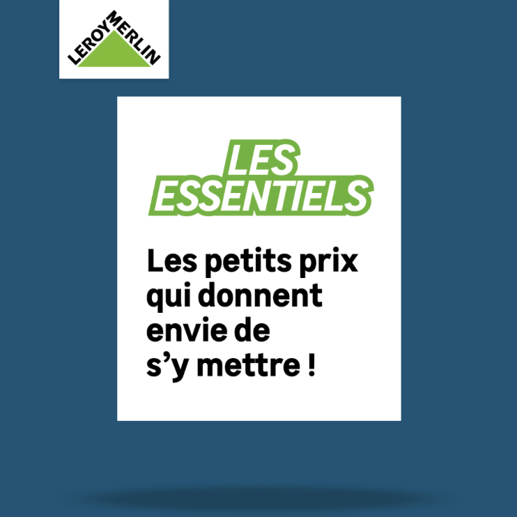 Dans un contexte marqué par l’inflation et une attention accrue des consommateurs à leurs dépenses, Leroy Merlin a lancé en 2024 la campagne « Les Essentiels ». Cette prise de parole vise à renforcer l’image prix de l’enseigne en mettant en avant une sélection de produits incontournables pour la maison. L’objectif est de proposer des solutions fiables à des prix justes, accessibles au plus grand nombre. À travers cette sélection, la marque valorise le bon rapport qualité-prix sur des produits du quotidien. Une manière d’accompagner les clients dans leurs projets tout en maîtrisant leur budget.